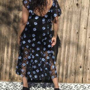$350.00$86.00Size: Large (New – Tags) Timeless and Romantic. Lace Fabric with floral appliques, ruffle trim,…