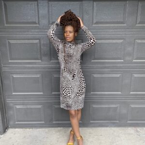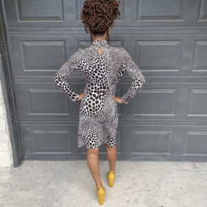 Joseph Ribkoff Brown Combo Animal Print Turtle Neck Mini Dress